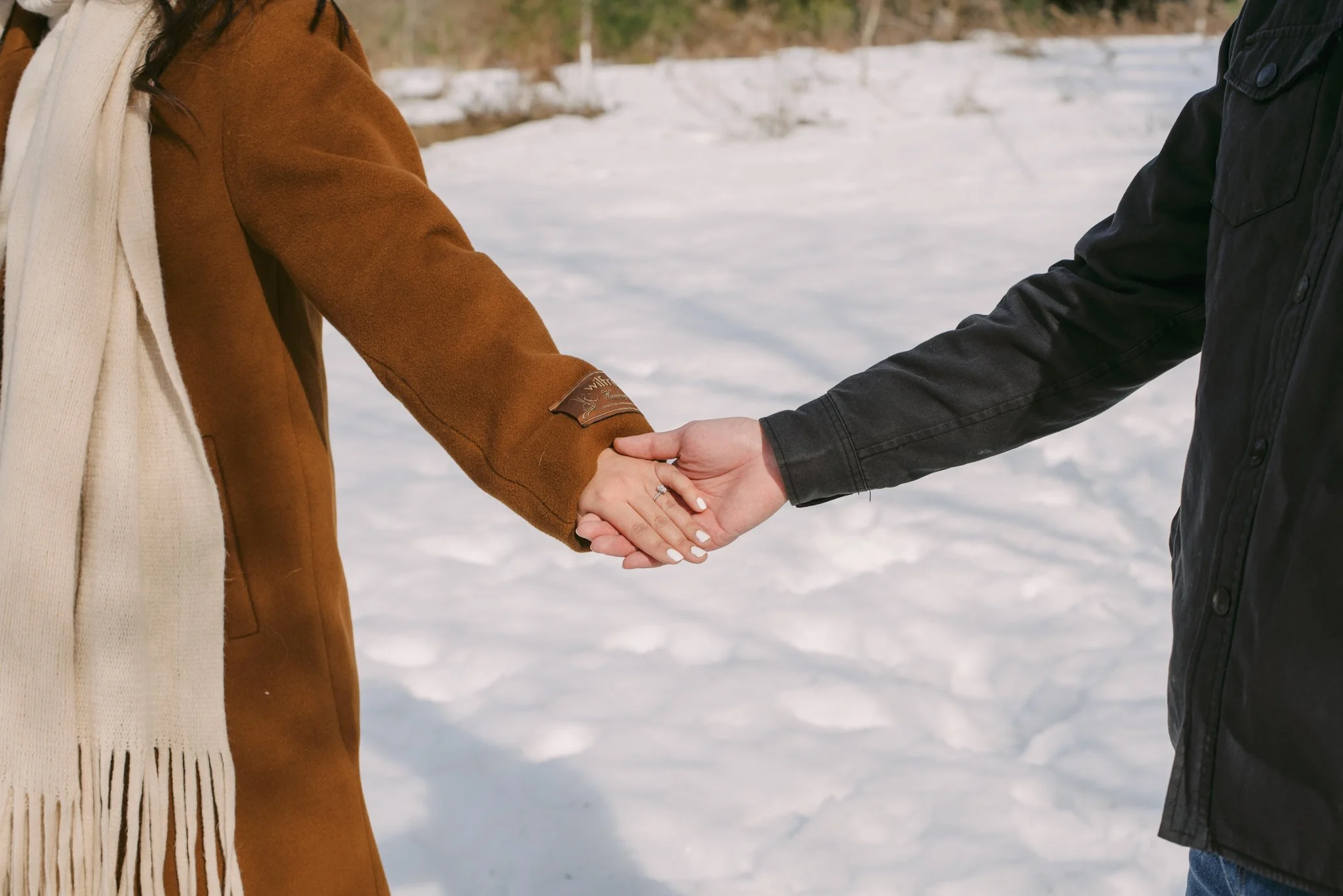 Luckily, we managed to find a nice spot for Josephine and Cody’s engagement shoot. The snow had all but melted at this point, which was quite disappointing. However, as we climbed deeper into the forest, we were able to find a section of fresh snow!